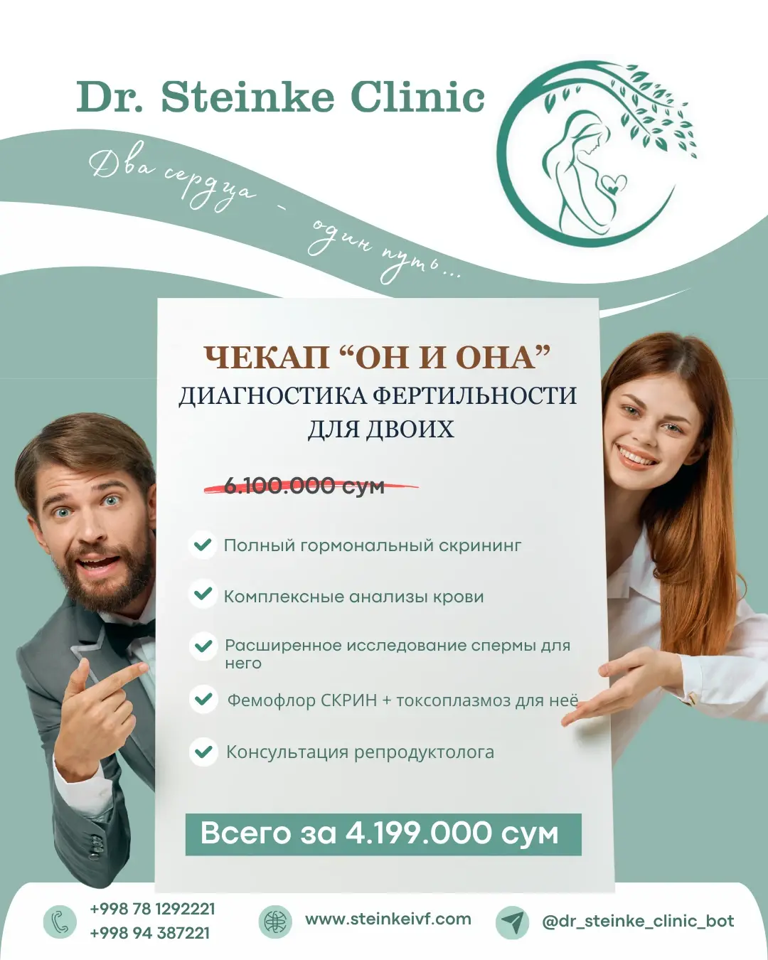 Мы знаем, что многие ищут чек ап для женщин, но мы считаем, что подход должен быть комплексным. Наша программа «Он и она» — это идеальный вариант для пар, которые хотят вместе позаботиться о своём будущем. Наш чек ап организма в Ташкенте — это не просто процедура, а инвестиция в ваше совместное счастье. Узнать точную чекап стоимость вы можете, позвонив по нашим телефонам.