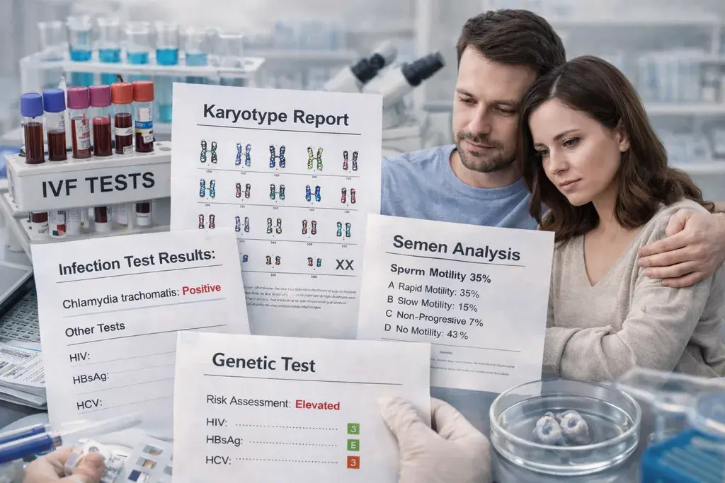 Tahlillar ro‘yxati individual tarzda belgilanadi. Erkaklar uchun tahlillar sperma sifati va urug‘lantirishga ta’sir qiluvchi omillarni baholashga qaratilgan. Ayollar uchun tahlillar ovulyatsiya va bachadon holatini baholovchi kengaytirilgan diagnostikani o‘z ichiga oladi.
